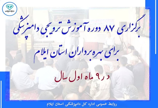 به گزارش روابط عمومی اداره کل دامپزشکی استان ایلام، ۸۷ دوره آموزشی در ۹ماهه سال جاری برای دامدران وروستائیان توسط کارشناسان ادارات دامپزشکی شهرستانها درسطح استان برگزار گردید و در مجموع ۱۸۳۱ نفر از بهرهبرداران در آنها شرکت کرده اند. موضوعات ارائهشده در این دوره های آموزشی شامل اصول قرنطینه در واحدهای دامی، آشنایی با بیماری تب برفکی و راه های مقابله با آن، بهداشت شیر از تولید تا عرضه، پیشگیری از بیماریهای مشترک بین انسان و دام، تب کریمه کنگو ، معضلات کشتار غیرمجاز دام و طیور، و واکسیناسیون طیور سنتی بود. شایان ذکر است ، این دورههای آموزشی ترویجی تا پایان سال به صورت ماهانه برای بهرهبرداران در استان ادامه خواهد داشت.